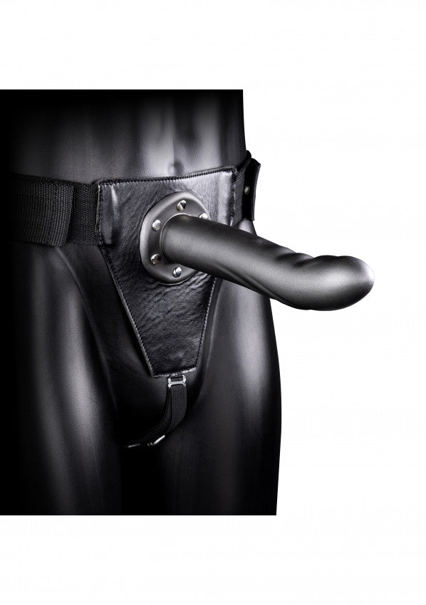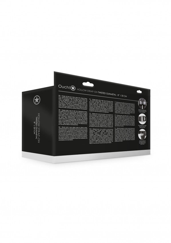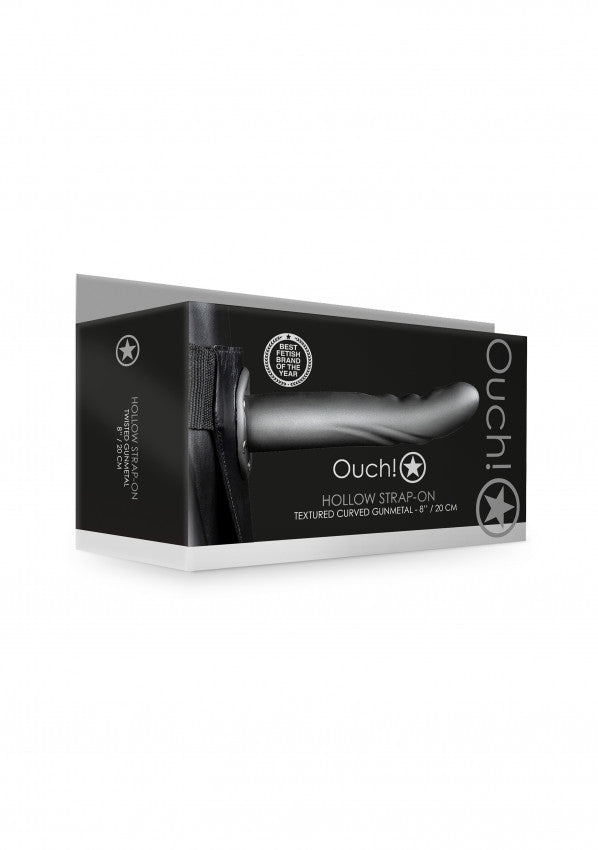fallo cavo indossabile Textured Curved Hollow Strap-on - 8'' / 20 cm - Gun Metal