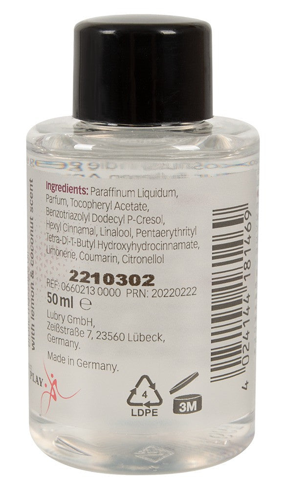 L'olio per massaggi erotici Just Play ha un'eccitante profumazione esotica al limone e cocco che coccola tutti i sensi e risveglia gli stati d'animo erotici durante un massaggio con il partner. Molto economico. Vegano. 50 ml. Solo per uso esterno.