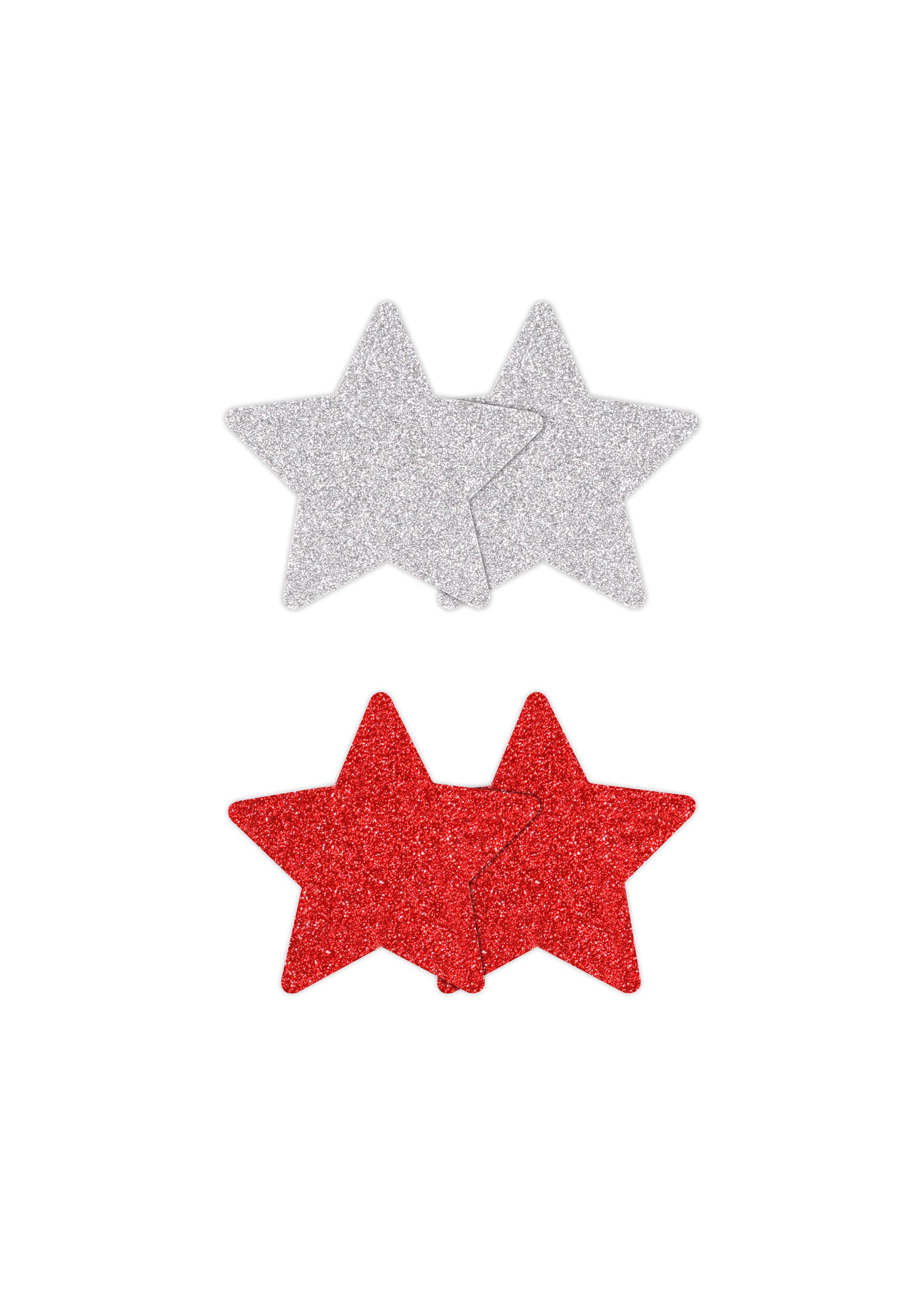 Copricapezzoli a forma di stella Pasties Glitter Stars 2 Pair red & silver