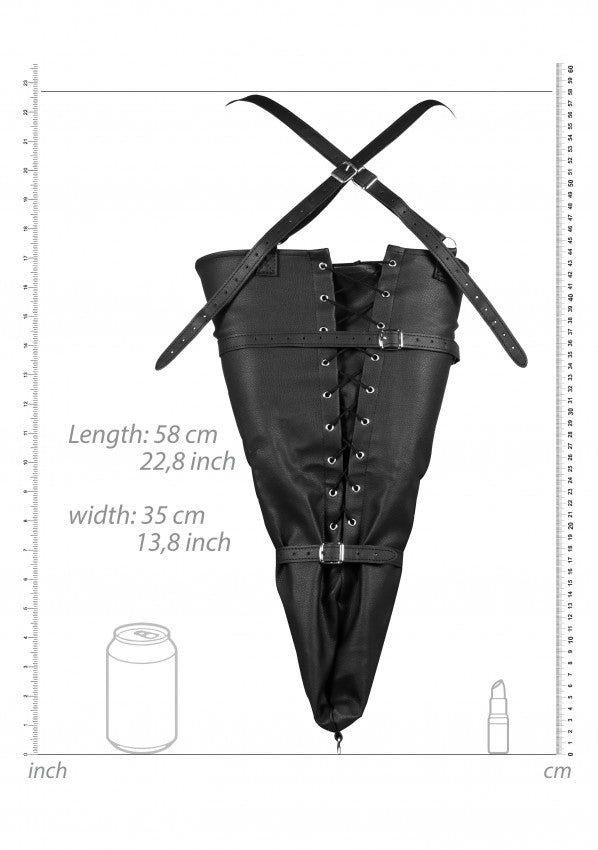 Lega saldamente le braccia del tuo schiavo dietro la schiena con il nostro bracciale di restrizione in similpelle PU. Progettato per aumentare l'intensità e rendere il tuo schiavo completamente impotente ad ogni desiderio. Inserendo le braccia nel bracciale di restrizione, puoi prendere il completo controllo limitando la loro libertà di movimento. Regola i lacci e stringi tutte le cinghie per una vestibilità perfetta, rafforzando il tuo potere e la tua dominanza. L'anello a D all'estremità aggiunge un ulteriore livello di perversione, in modo da poter attaccare corde, catene o manette per caviglie.