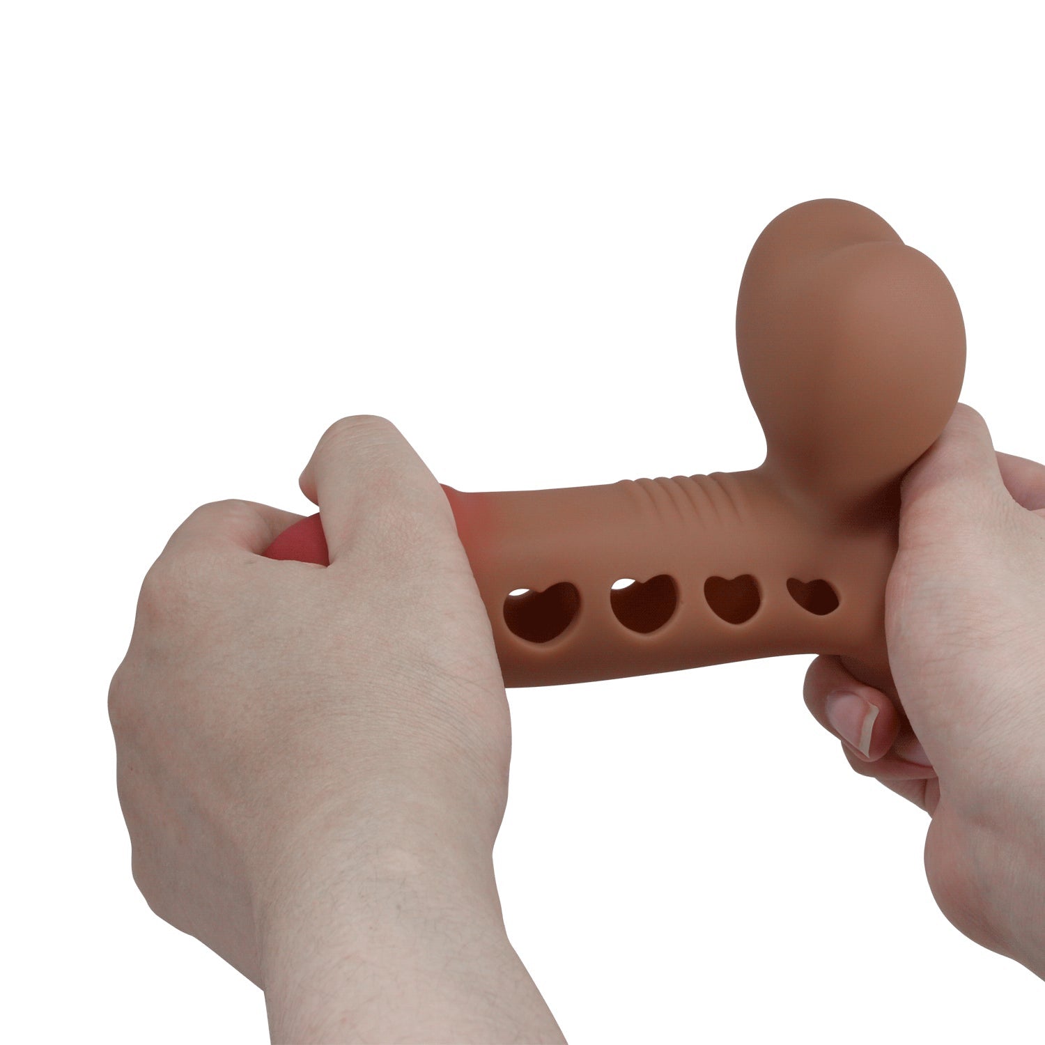 La guaina e prolunga pene Tyronn è un dispositivo in silicone morbido ed elastico progettato per aumentare la lunghezza, lo spessore e l’intensità della stimolazione durante il rapporto. Il toy ha un design ergonomico con dei fori a cuore e una pompa che gonfia la parte interna, stimolando così anche la partner durante il rapporto. Include anello per testicoli per migliorare la tenuta e la durata dell’erezione. Misura 16,1 cm di lunghezza, 4,4 cm di diametro massimo, 10,8 cm di altezza.